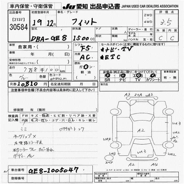 Honda FIT с аукциона Японии JU Aichi лот № 30584