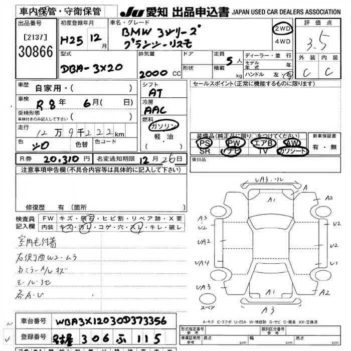 BMW 3-Series с аукциона Японии JU Aichi лот № 30866