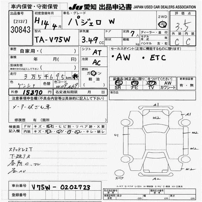 Mitsubishi PAJERO с аукциона Японии JU Aichi лот № 30843