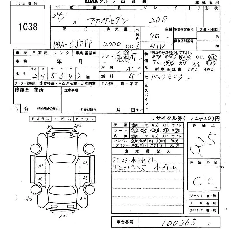 Mazda ATENZA SEDAN с аукциона Японии KCAA Yamaguchi лот № 1038