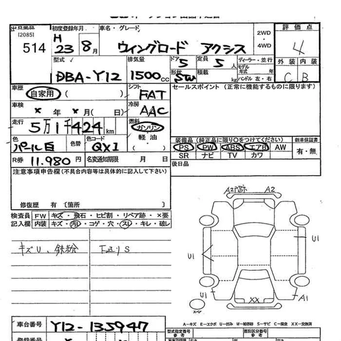Nissan WINGROAD с аукциона Японии JU Miyagi лот № 514