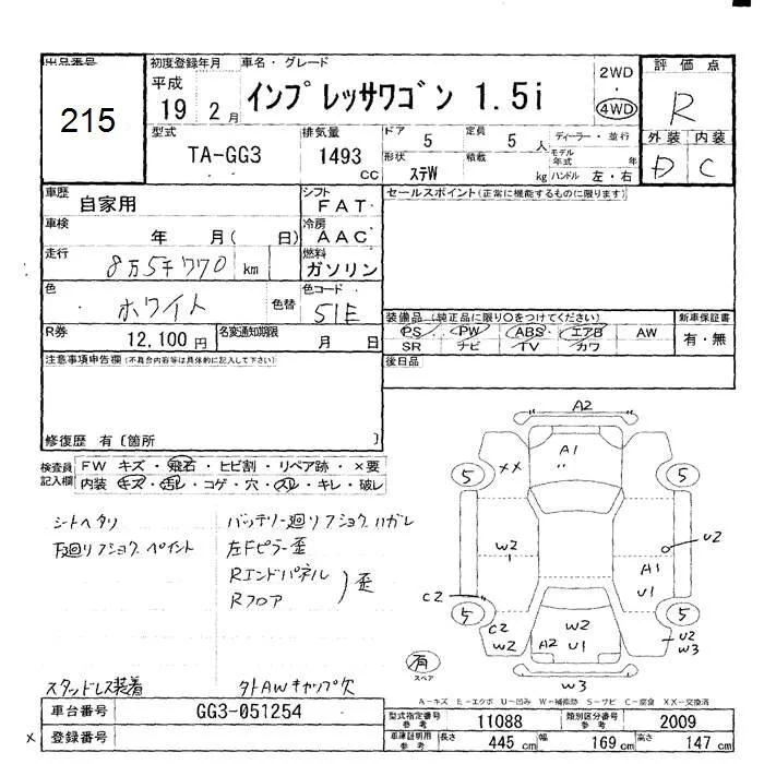 Subaru IMPREZA с аукциона Японии JU Hokkaido лот № 215