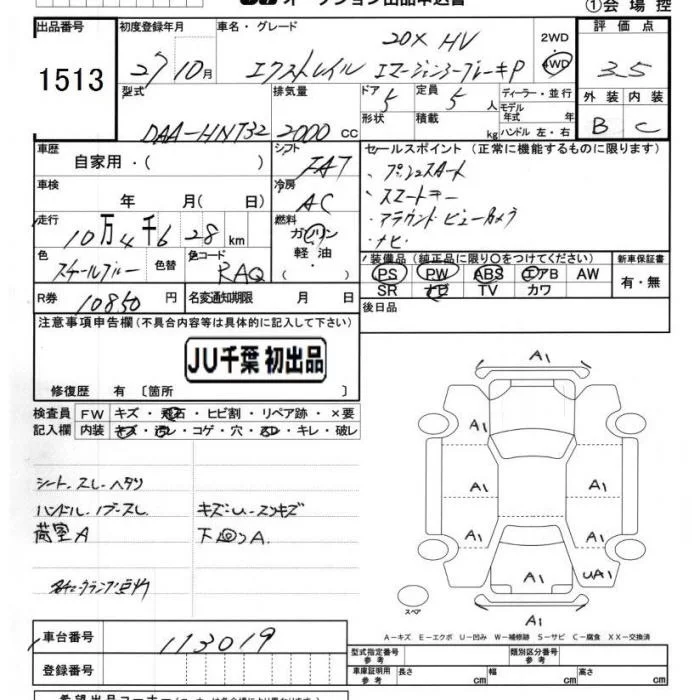 Nissan X-TRAIL с аукциона Японии JU Chiba лот № 1513