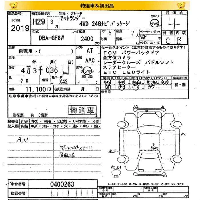 Mitsubishi OUTLANDER с аукциона Японии JU Miyagi лот № 2019