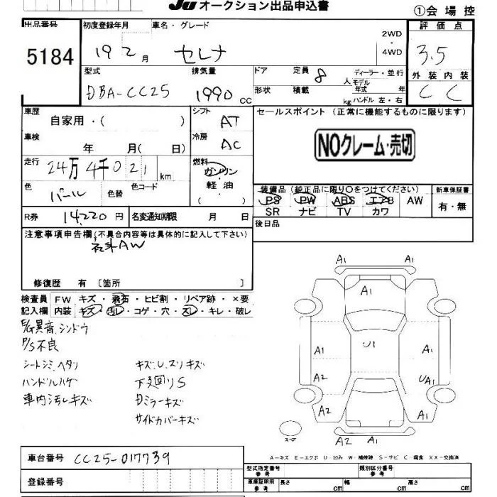 Nissan SERENA с аукциона Японии JU Chiba лот № 5184