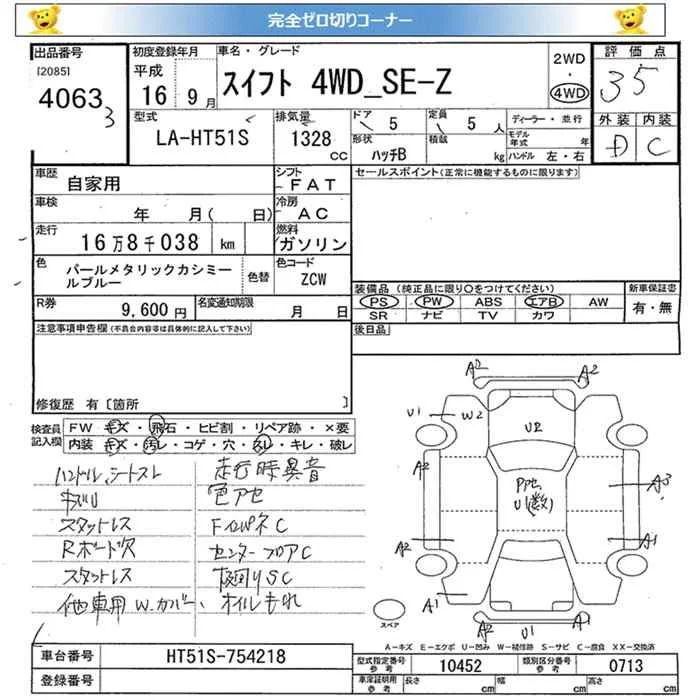 Suzuki SWIFT с аукциона Японии JU Miyagi лот № 4063