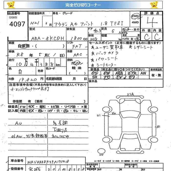 Audi A4 с аукциона Японии JU Miyagi лот № 4097