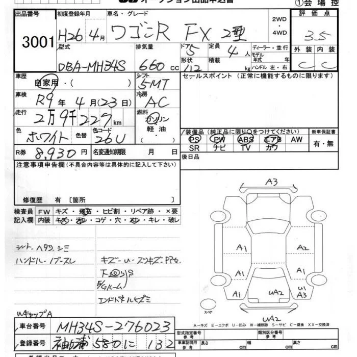 Suzuki WAGON R с аукциона Японии JU Chiba лот № 3001