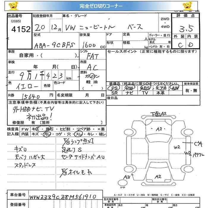 Volkswagen NEW BEETLE с аукциона Японии JU Miyagi лот № 4152