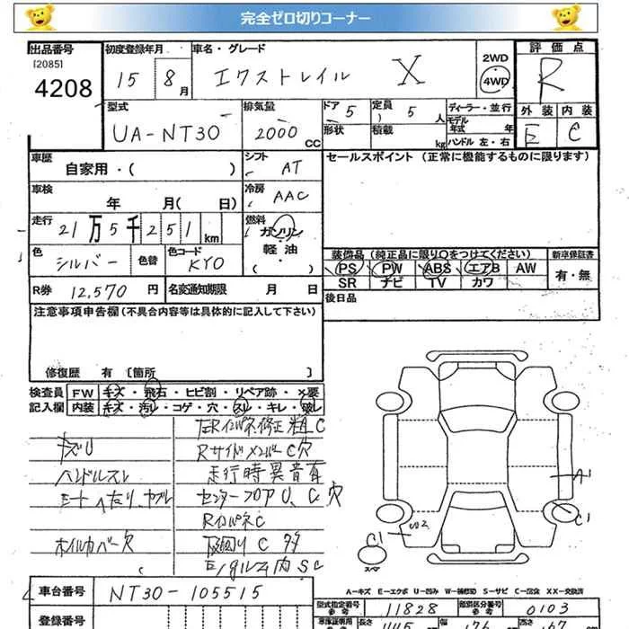 Nissan X-TRAIL с аукциона Японии JU Miyagi лот № 4208