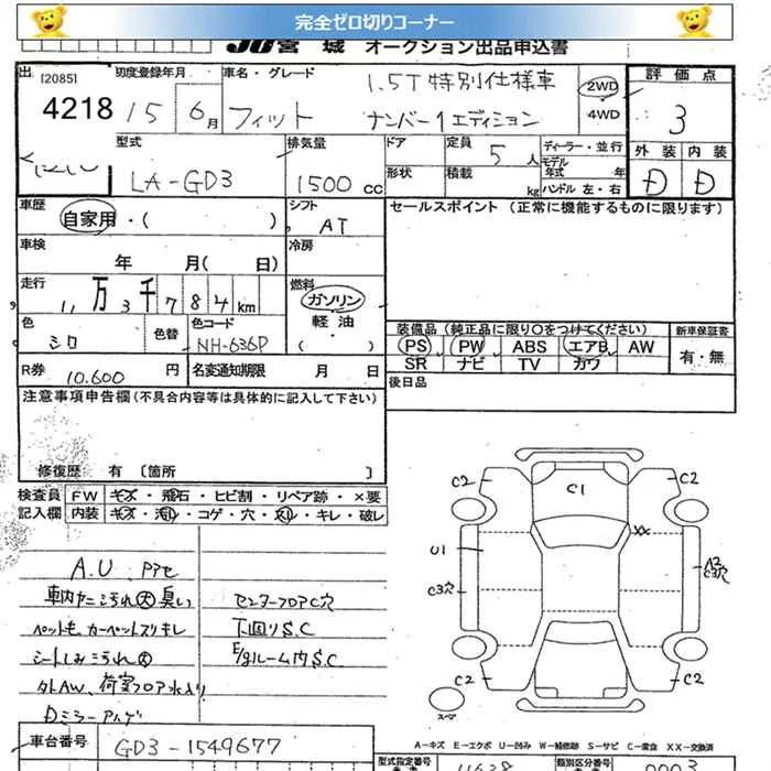 Honda FIT с аукциона Японии JU Miyagi лот № 4218
