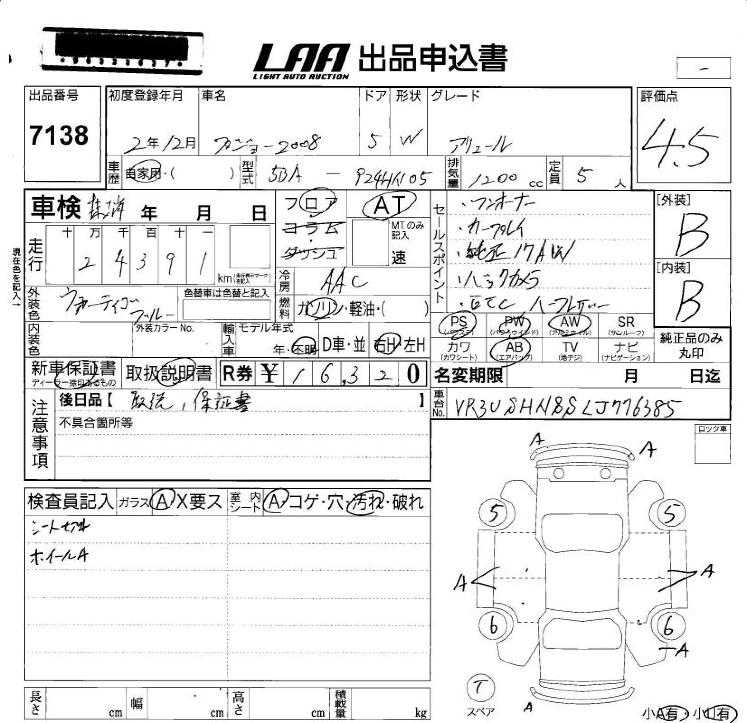 Peugeot 2008 с аукциона Японии LAA Okayama лот № 7138
