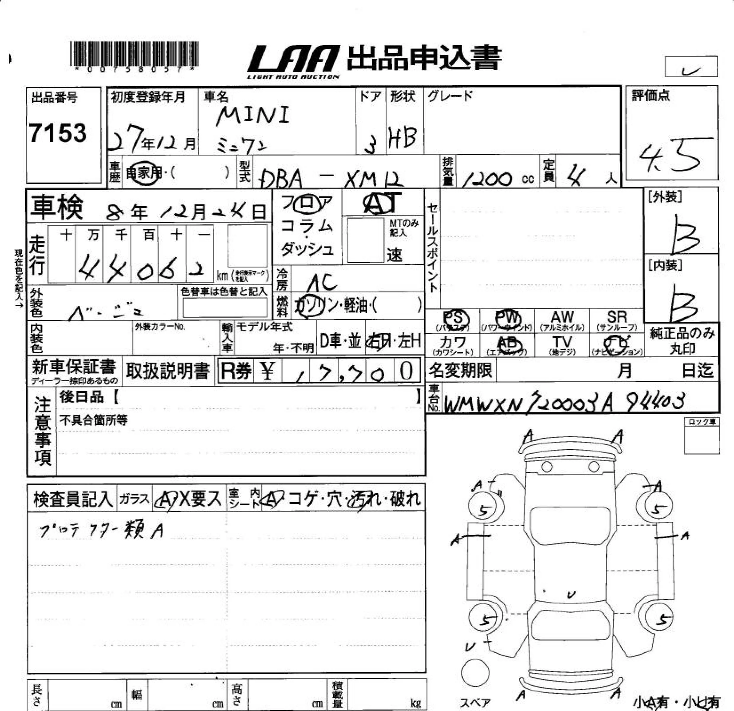 BMW MINI с аукциона Японии LAA Okayama лот № 7153