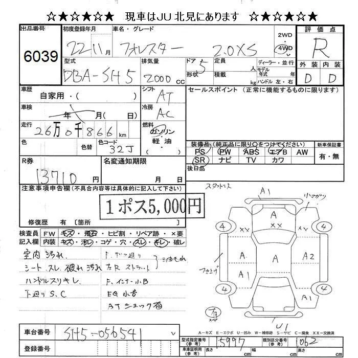 Subaru FORESTER с аукциона Японии JU Hokkaido лот № 6039