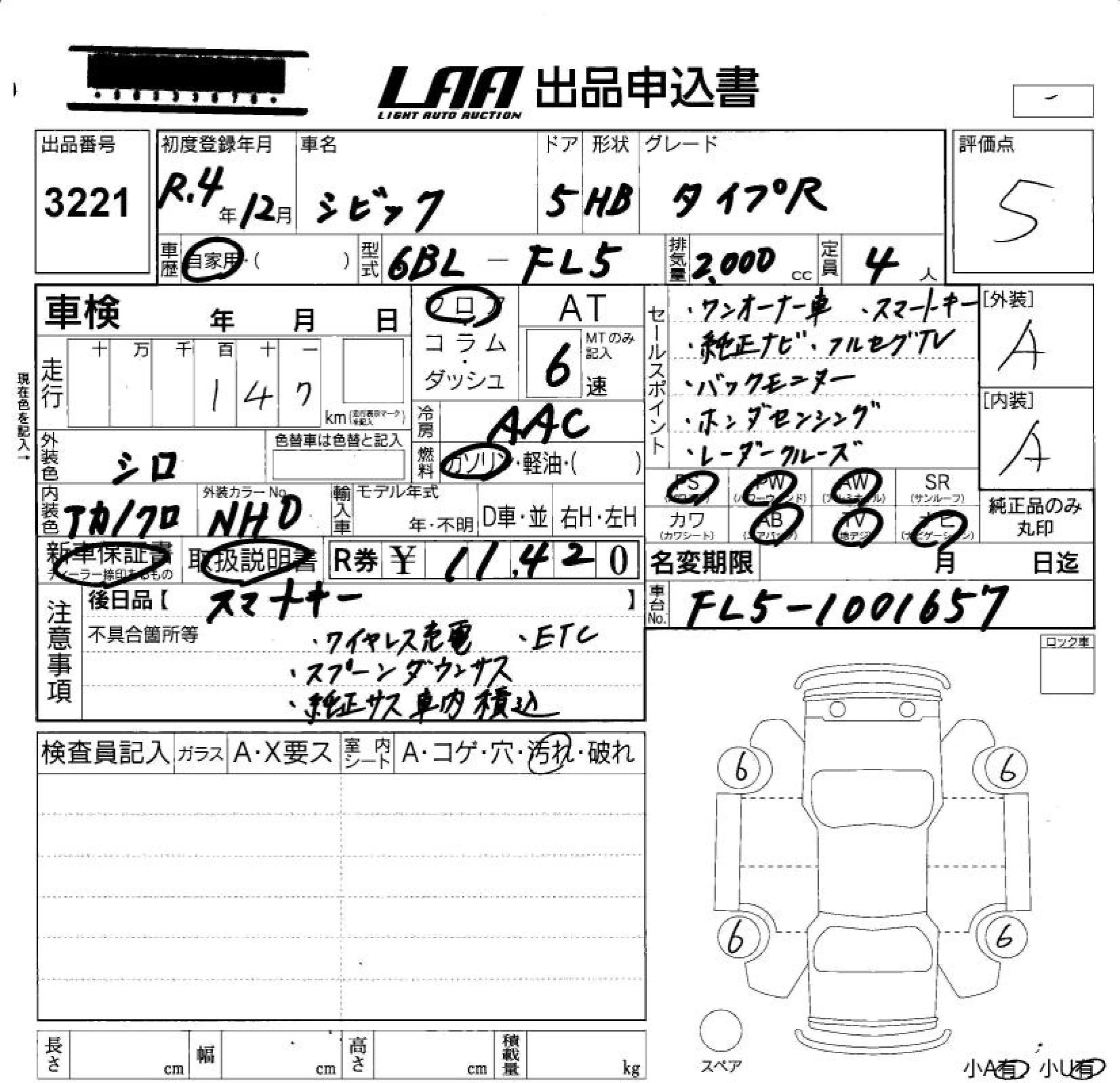 Honda CIVIC с аукциона Японии LAA Okayama лот № 3221