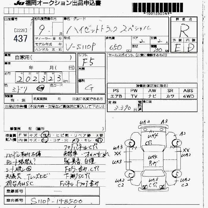 Daihatsu HIJET TRUCK с аукциона Японии JU Fukuoka лот № 437