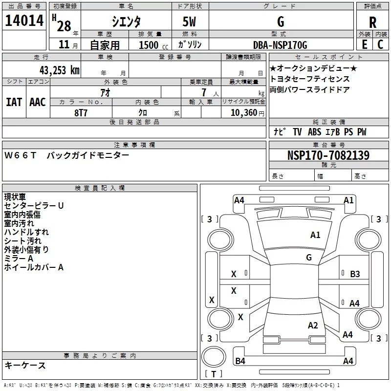Toyota SIENTA с аукциона Японии TAA Yokohama лот № 14014
