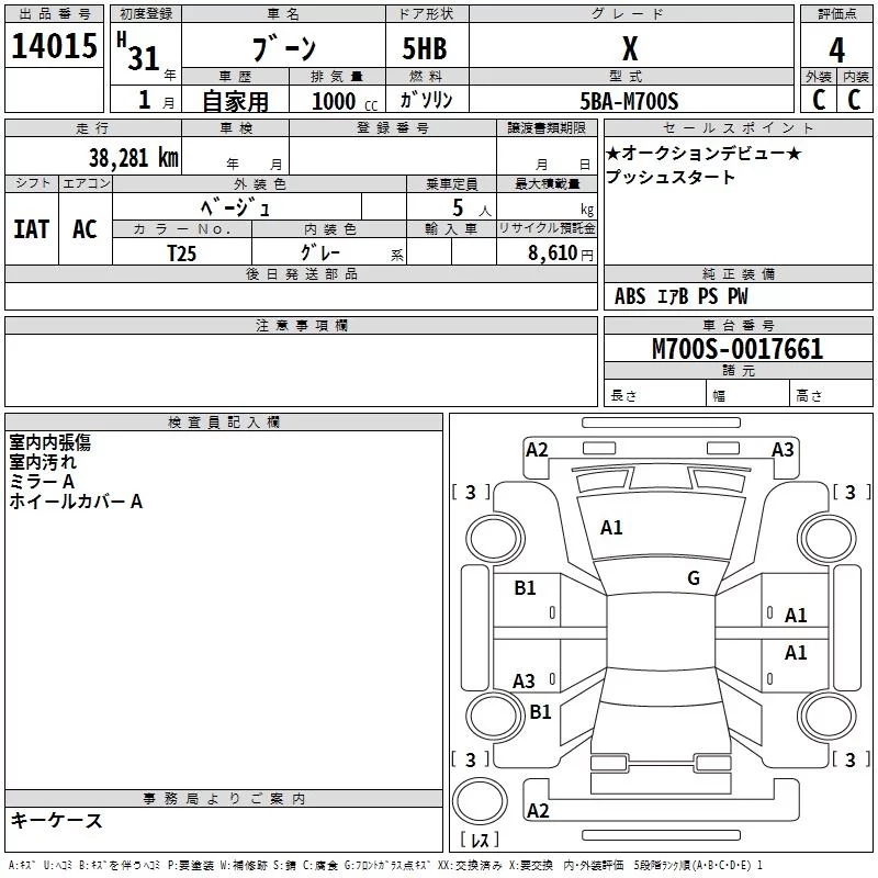 Daihatsu Boon с аукциона Японии TAA Yokohama лот № 14015