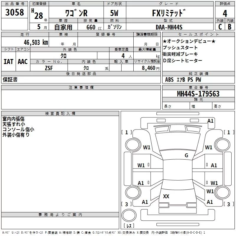 Suzuki WAGON R с аукциона Японии TAA Hyogo лот № 3058