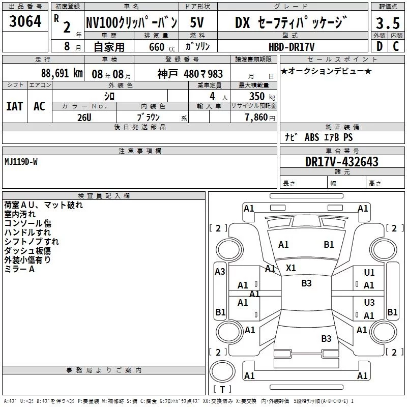 Nissan CLIPPER VAN с аукциона Японии TAA Hyogo лот № 3064