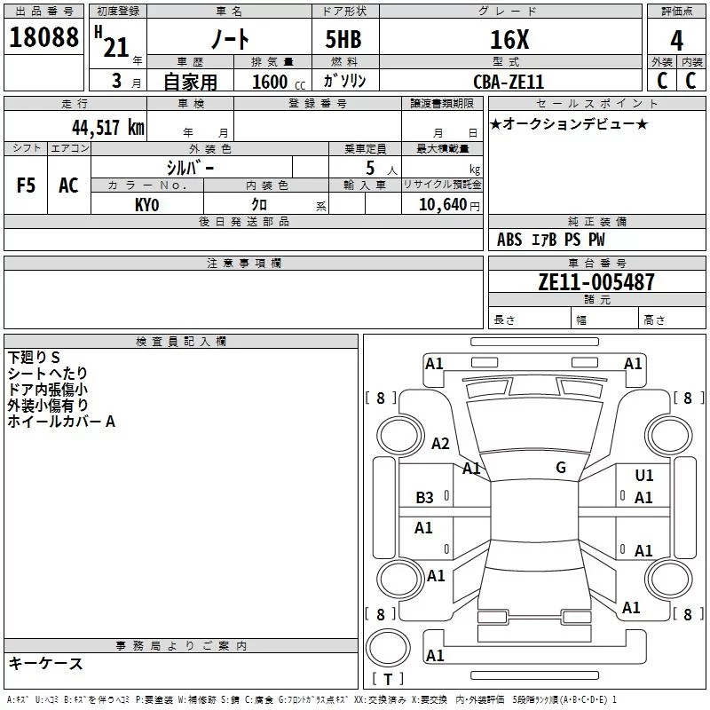 Nissan NOTE с аукциона Японии TAA Yokohama лот № 18088