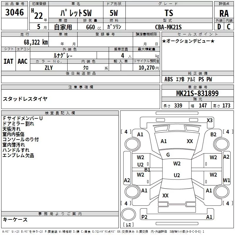 Suzuki PALETTE с аукциона Японии TAA Yokohama лот № 3046