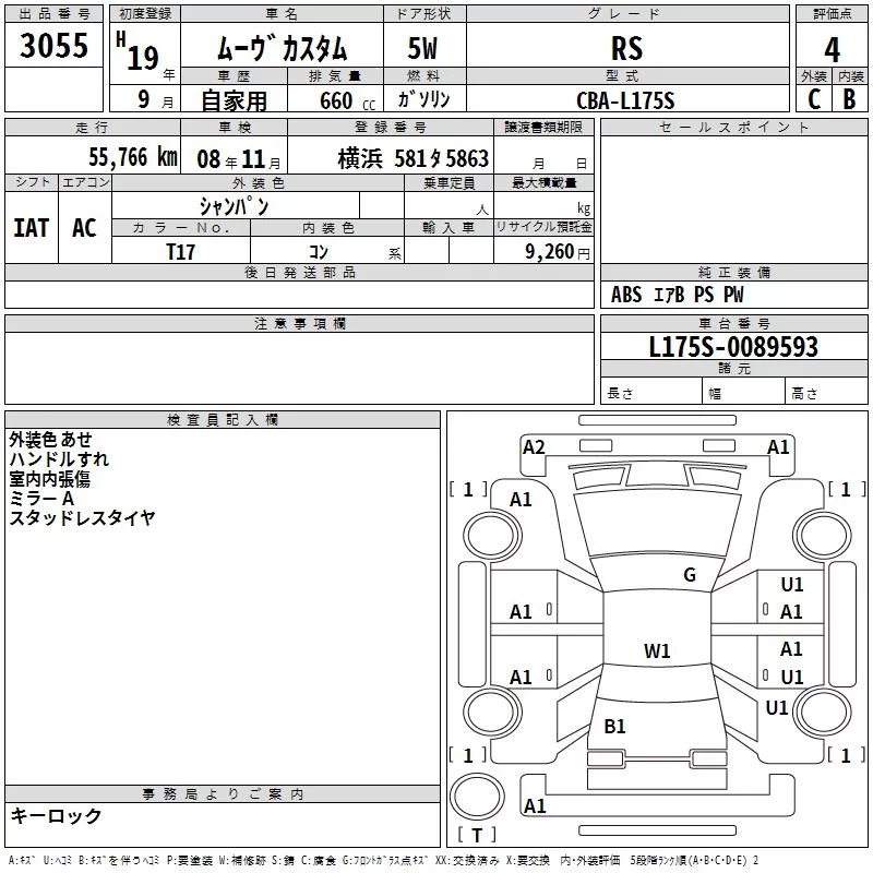 Daihatsu MOVE с аукциона Японии TAA Yokohama лот № 3055