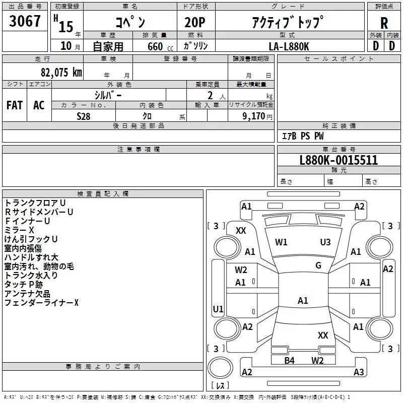Daihatsu Copen с аукциона Японии TAA Yokohama лот № 3067