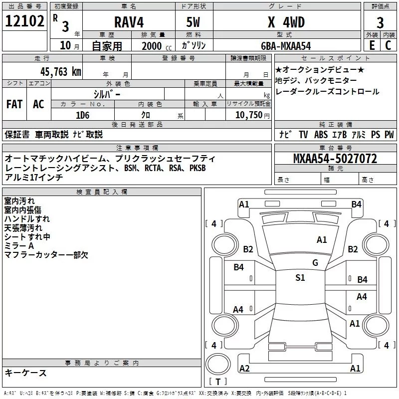 Toyota RAV4 с аукциона Японии TAA Yokohama лот № 12102