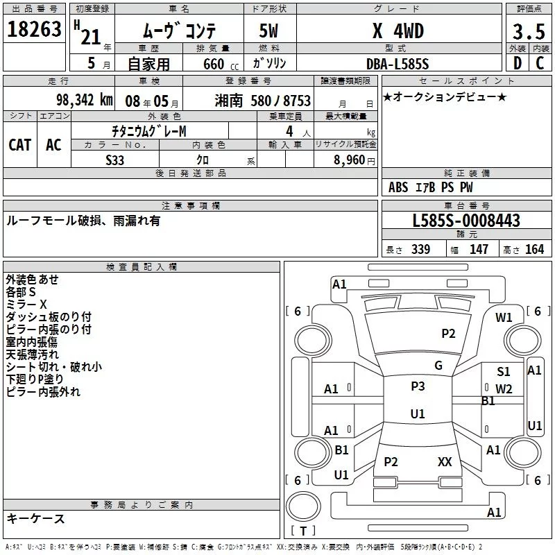 Daihatsu MOVE CONTE с аукциона Японии TAA Yokohama лот № 18263