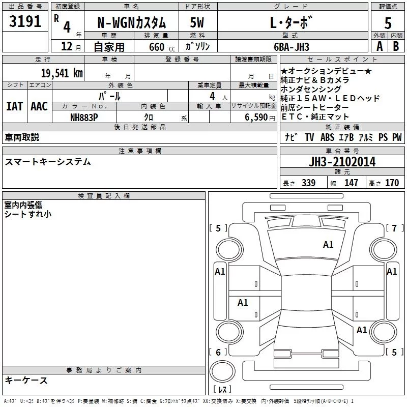Honda N WGN с аукциона Японии TAA Yokohama лот № 3191