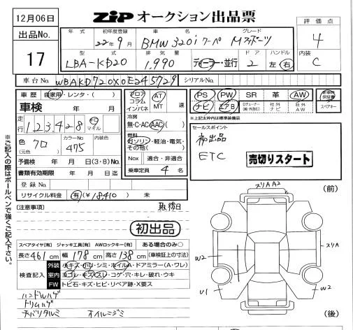 BMW 3-Series с аукциона Японии ZIP Tokyo лот № 17