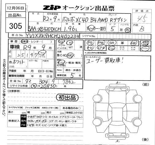 Volvo XC40 с аукциона Японии ZIP Tokyo лот № 305