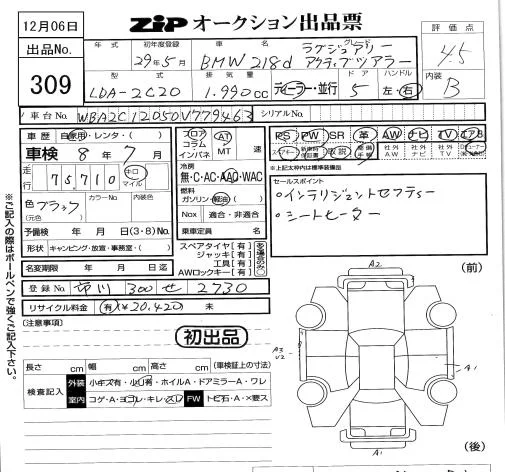 BMW 2-Series с аукциона Японии ZIP Tokyo лот № 309