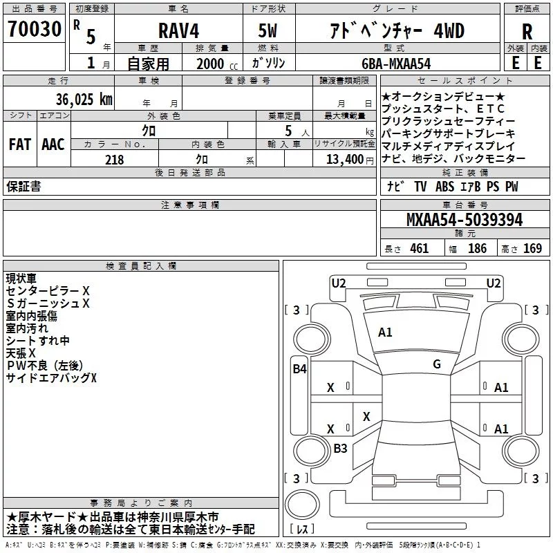 Toyota RAV4 с аукциона Японии TAA Yokohama лот № 70030