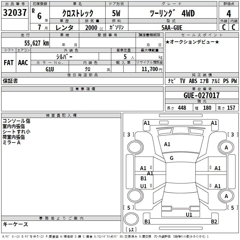 Subaru CROSSTREK с аукциона Японии TAA Yokohama лот № 32037