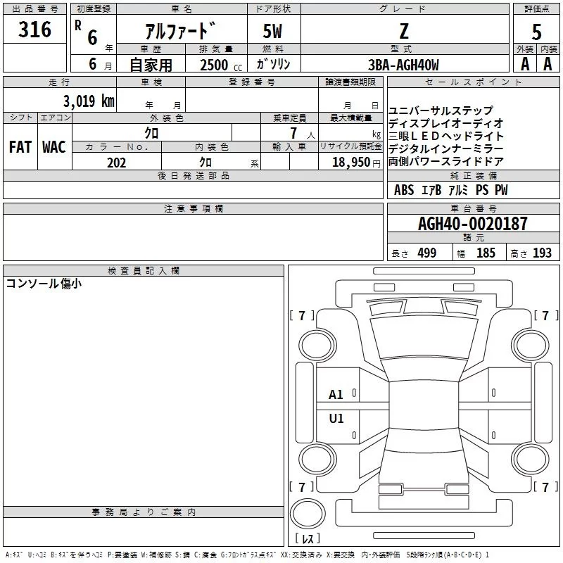 Toyota ALPHARD с аукциона Японии TAA Hyogo лот № 316