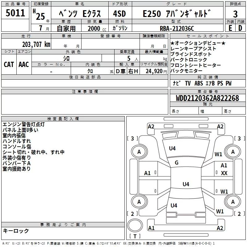 Mercedes-Benz E CLASS с аукциона Японии TAA Hyogo лот № 5011
