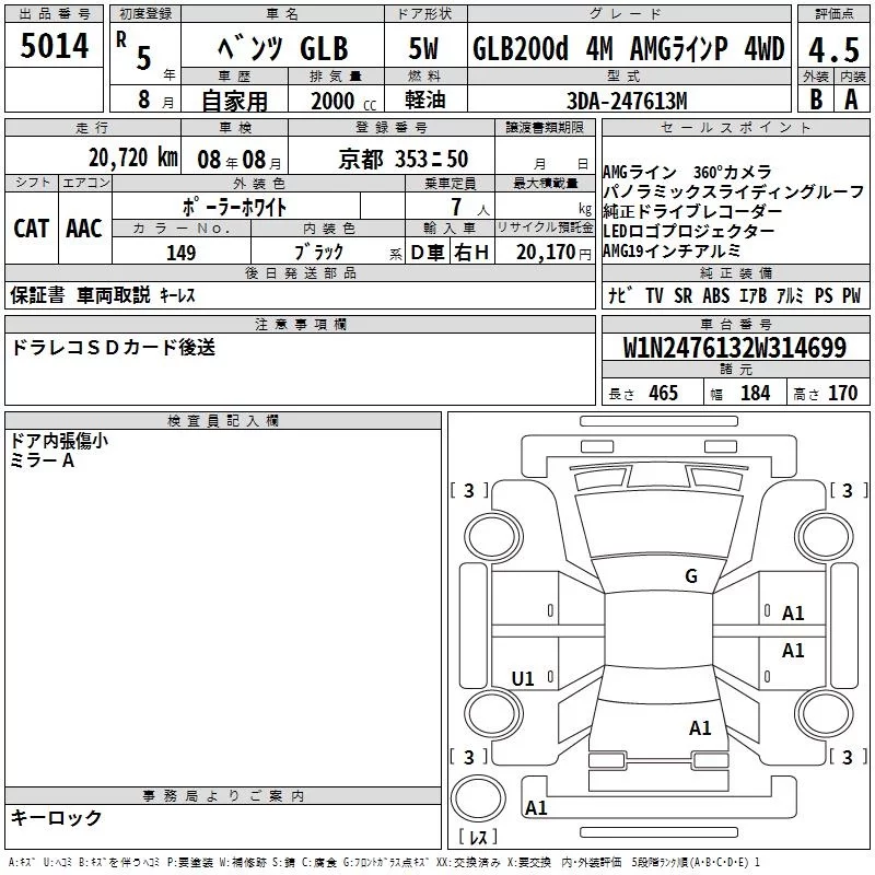 Mercedes-Benz GLB с аукциона Японии TAA Hyogo лот № 5014