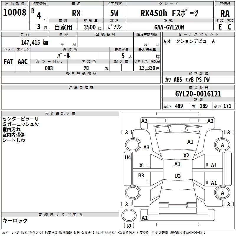 Lexus RX с аукциона Японии TAA Yokohama лот № 10008