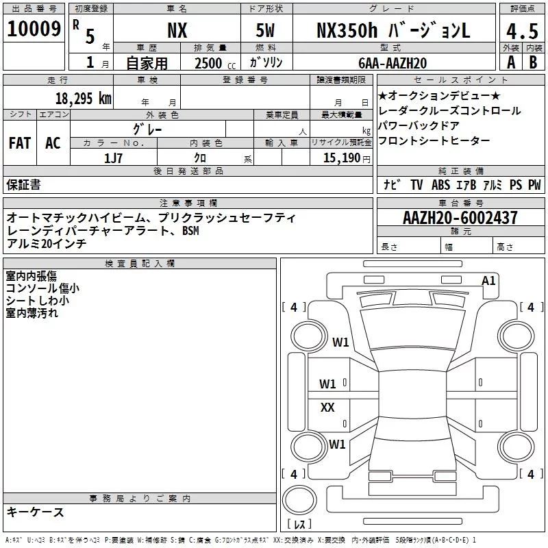 Lexus NX с аукциона Японии TAA Yokohama лот № 10009
