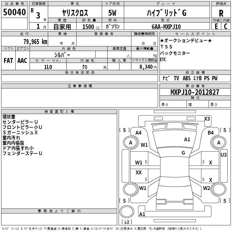 Toyota YARIS CROSS с аукциона Японии TAA Hyogo лот № 50040