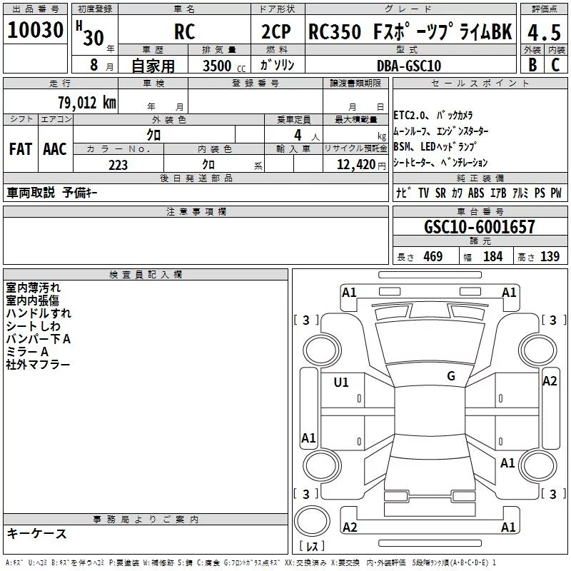 Lexus RC с аукциона Японии TAA Yokohama лот № 10030