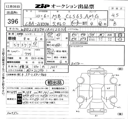 Mercedes-Benz AMG с аукциона Японии ZIP Tokyo лот № 396