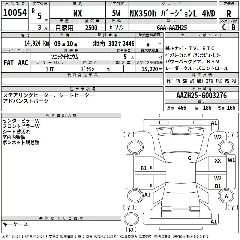 Lexus NX с аукциона Японии TAA Yokohama лот № 10054