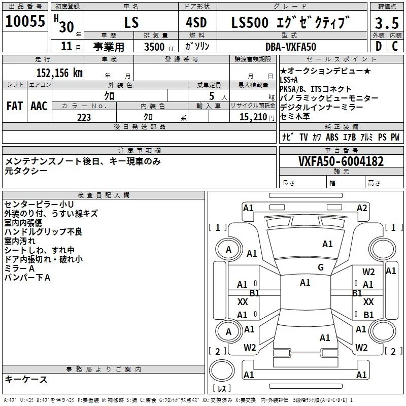Lexus LS с аукциона Японии TAA Yokohama лот № 10055