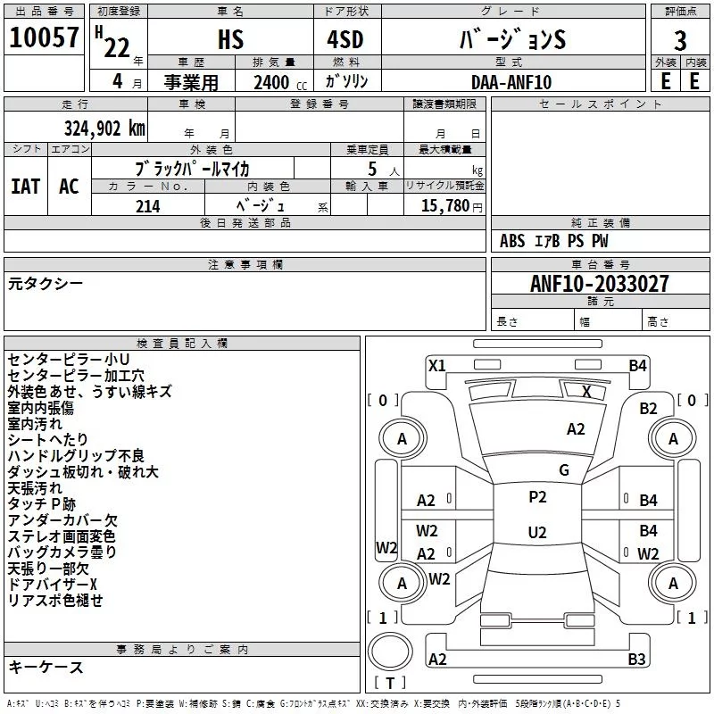 Lexus HS с аукциона Японии TAA Yokohama лот № 10057