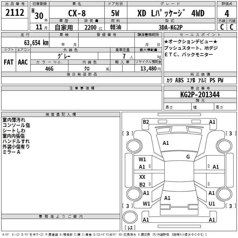 Mazda CX-8 с аукциона Японии TAA Hyogo лот № 2112