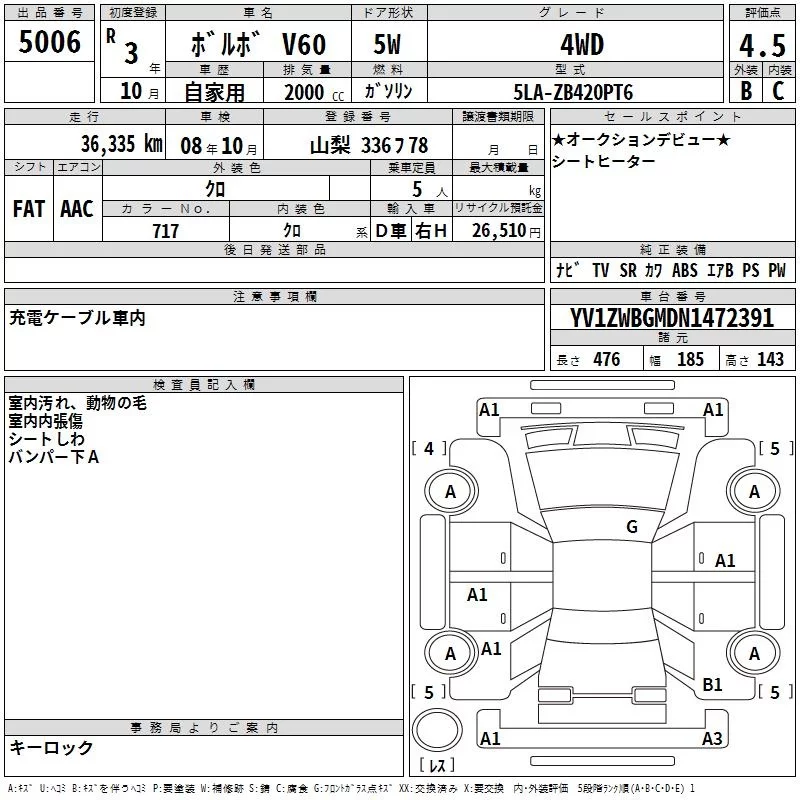 Volvo V60 с аукциона Японии TAA Yokohama лот № 5006