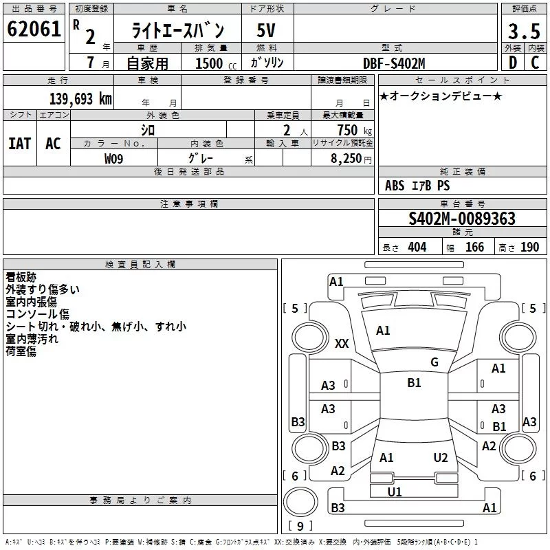 Toyota LITE ACE VAN с аукциона Японии TAA Hyogo лот № 62061